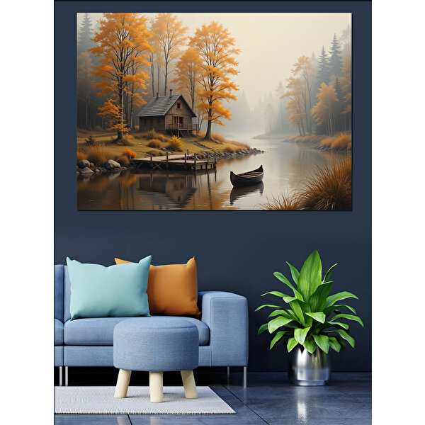 Tablomega Sarı Sonbahar Göl Manzarası Dekoratif Kanvas - Mdf Ahşap Tablo 100x140 cm