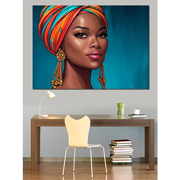 Tablomega Sarı Türbanlı Kadın Dekoratif Kanvas - Mdf Ahşap Tablo 50x70 cm