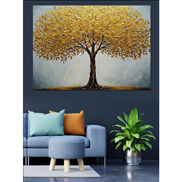 Tablomega Sarı Yapraklı Büyük Ağaç Dekoratif Kanvas - Mdf Ahşap Tablo 70x100 cm