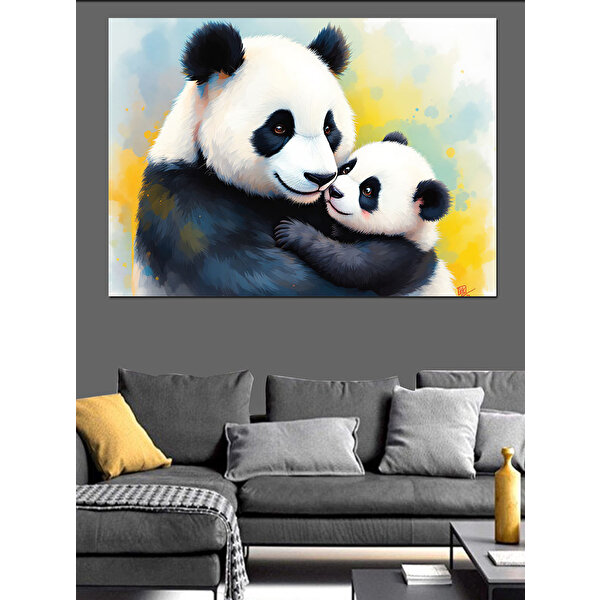 Tablomega Sarılmakta Olan Panda Çifti Dekoratif Kanvas - Mdf Ahşap Tablo 100x140 cm
