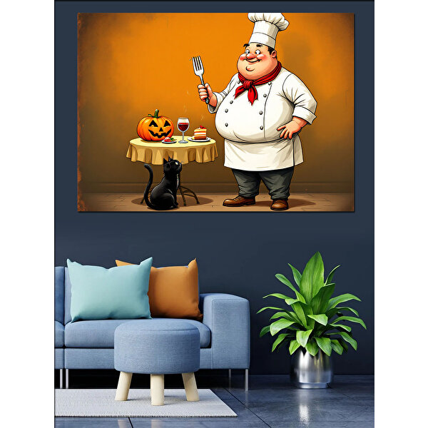 Tablomega Şef Ve Balkabağı Figürü Dekoratif Kanvas - Mdf Ahşap Tablo 70x100 cm