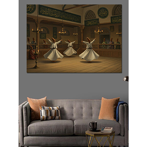 Tablomega Semazenlerle Ruhani Dönüşler Dekoratif Kanvas - Mdf Ahşap Tablo 70x100 cm