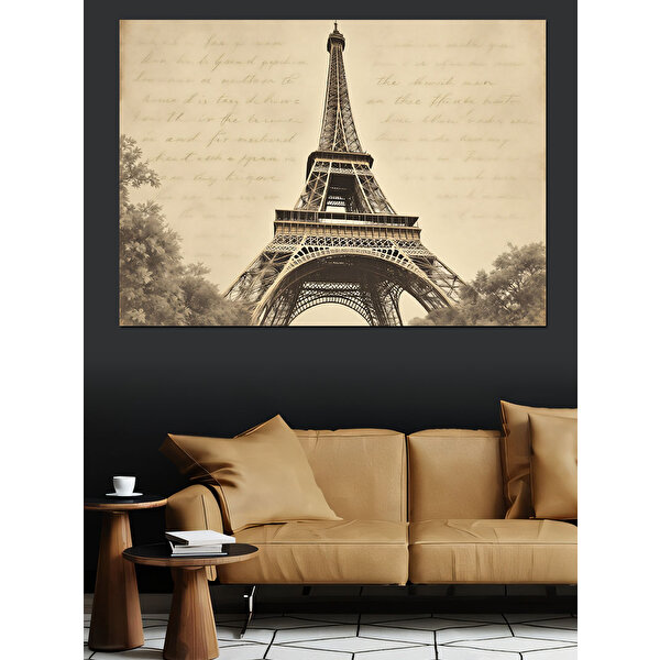 Tablomega Sepya Tonlarında Eyfel Kulesi Dekoratif Kanvas - Mdf Ahşap Tablo 100x140 cm