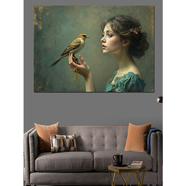 Tablomega Serçeli Zarif Kadın Dekoratif Kanvas - Mdf Ahşap Tablo 100x140 cm