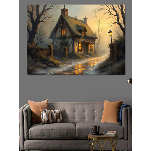 Tablomega Sisli Ormanda Masal Evi Dekoratif Kanvas - Mdf Ahşap Tablo 35x50 cm