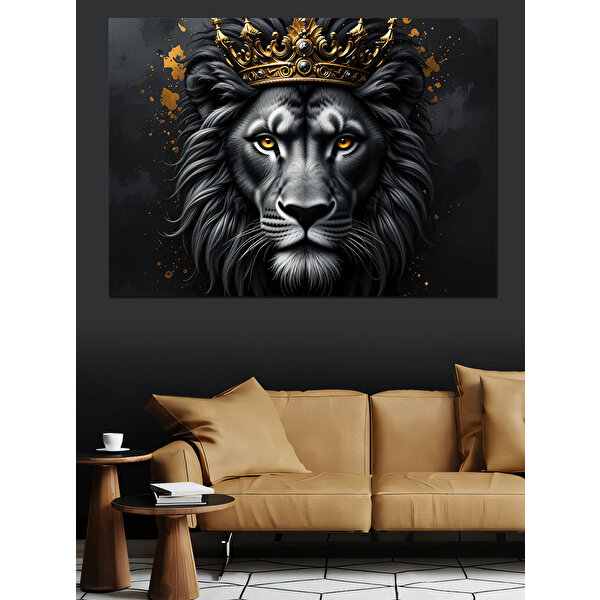 Tablomega Siyah Beyaz Asil Aslan Dekoratif Kanvas - Mdf Ahşap Tablo 70x100 cm