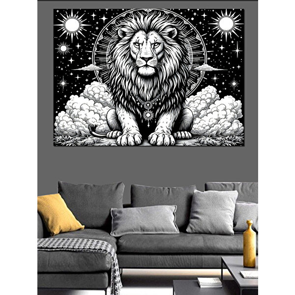 Tablomega Siyah Beyaz Aslan İllüstrasyonu Dekoratif Kanvas - Mdf Ahşap Tablo 70x100 cm