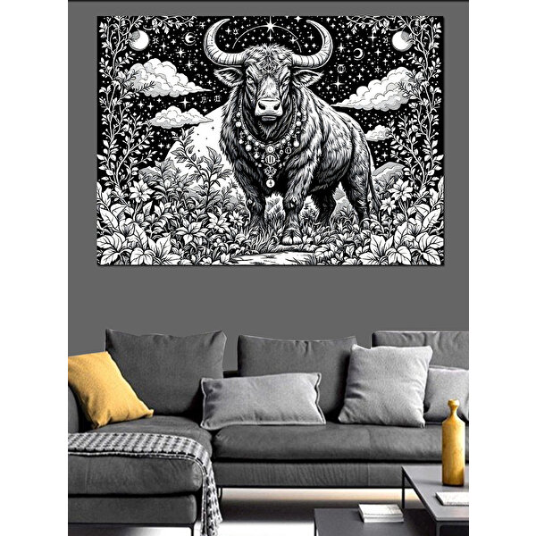 Tablomega Siyah-beyaz Boğa Dekoratif Kanvas - Mdf Ahşap Tablo 35x50 cm