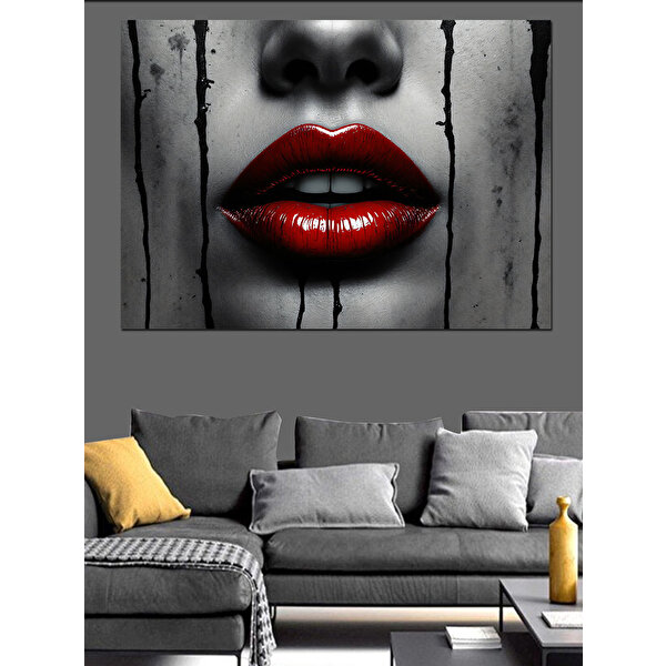Tablomega Siyah Beyaz Dudak Portresi Dekoratif Kanvas - Mdf Ahşap Tablo 50x70 cm