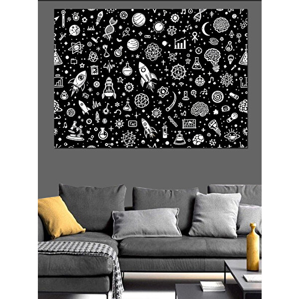 Tablomega Siyah Beyaz İllüstratif Desen Dekoratif Kanvas - Mdf Ahşap Tablo 50x70 cm