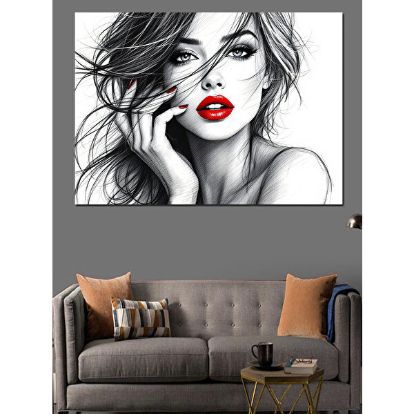 Siyah Beyaz Kadın Portresi Dekoratif Kanvas - Mdf Ahşap Tablo