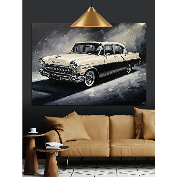 Siyah Beyaz Klasik Araba Dekoratif Kanvas - Mdf Ahşap Tablo
