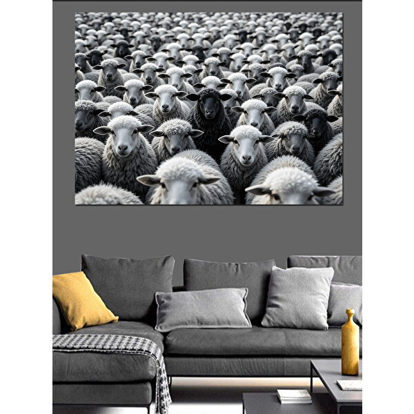 Tablomega Siyah Beyaz Koyun Sürüsü Dekoratif Kanvas - Mdf Ahşap Tablo 100x140 cm