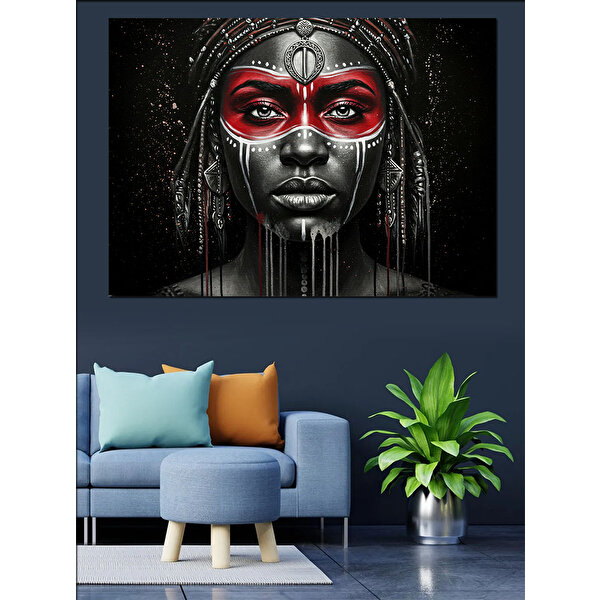 Tablomega Siyah Beyaz Maskeli Kadın Dekoratif Kanvas - Mdf Ahşap Tablo 50x70 cm