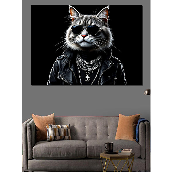 Tablomega Siyah Gözlüklü Punk Kedi Dekoratif Kanvas - Mdf Ahşap Tablo 50x70 cm