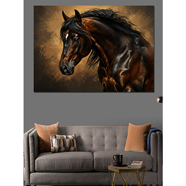 Tablomega Siyah Güçlü At Dekoratif Kanvas - Mdf Ahşap Tablo 100x140 cm