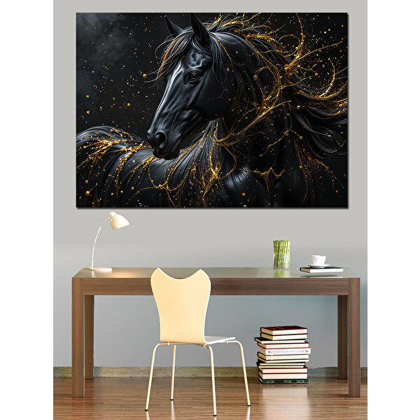 Siyah Parlayan Asil At Dekoratif Kanvas - Mdf Ahşap Tablo