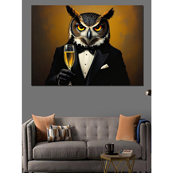 Smokinli Baykuş Dekoratif Kanvas - Mdf Ahşap Tablo