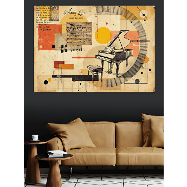 Tablomega Soyut Piyano Tasarımı Dekoratif Kanvas - Mdf Ahşap Tablo 100x140 cm