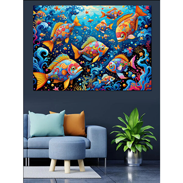 Soyut Renkli Balık Deseni Dekoratif Kanvas - Mdf Ahşap Tablo