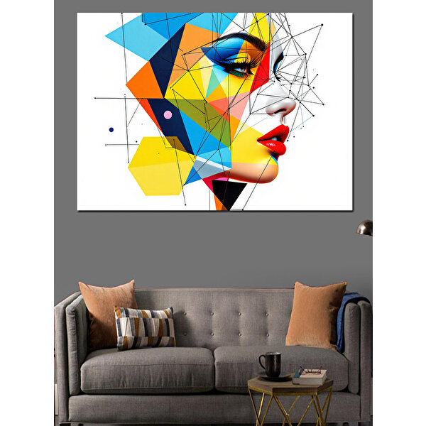Soyut Renkli Kadın Yüzü Dekoratif Kanvas - Mdf Ahşap Tablo