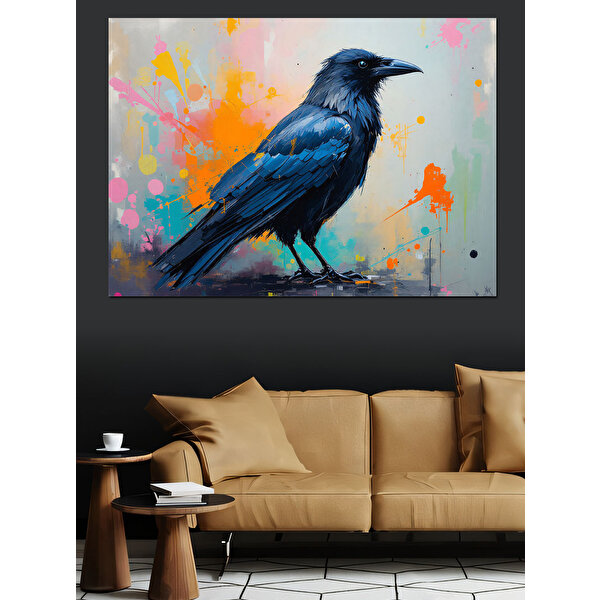 Tablomega Soyut Renkli Karga Dekoratif Kanvas - Mdf Ahşap Tablo 70x100 cm