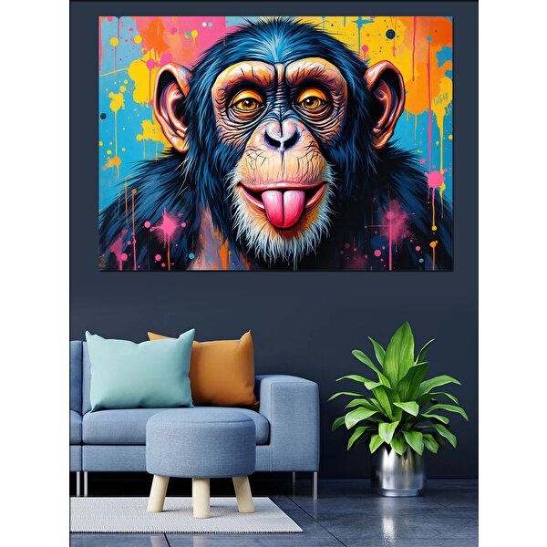 Soyut Renkli Maymun Dekoratif Kanvas - Mdf Ahşap Tablo