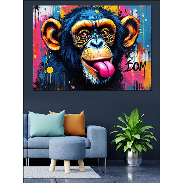 Tablomega Soyut Renkli Maymun Yüzü Dekoratif Kanvas - Mdf Ahşap Tablo 70x100 cm
