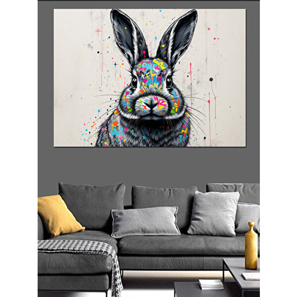 Soyut Renkli Tavşan Portresi Dekoratif Kanvas - Mdf Ahşap Tablo