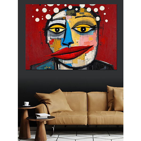 Soyut Renkli Yüz Maskesi Dekoratif Kanvas - Mdf Ahşap Tablo