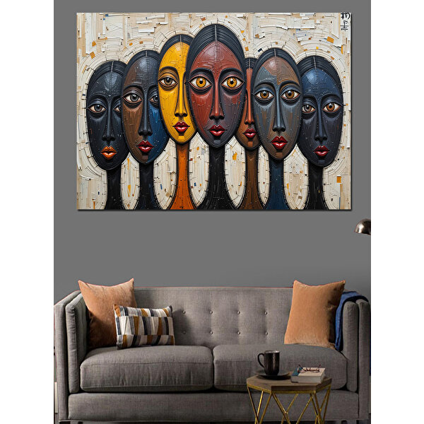 Tablomega Soyut Renkli Yüzler Dekoratif Kanvas - Mdf Ahşap Tablo 50x70 cm