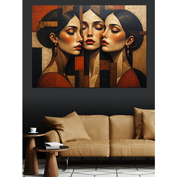 Soyut Üçlü Kadın Portresi Dekoratif Kanvas - Mdf Ahşap Tablo