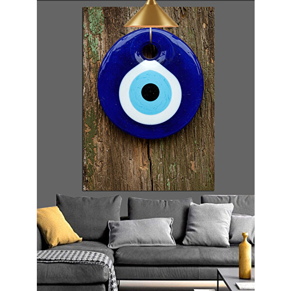Tablomega Tahta Ve Nazar Boncuğu Dekoratif Kanvas - Mdf Ahşap Tablo 70x100 cm