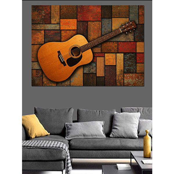 Tablomega Tahta Zeminli Klasik Gitar Dekoratif Kanvas - Mdf Ahşap Tablo 100x140 cm