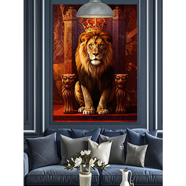 Tablomega Tahtta Aslan Kral Dekoratif Kanvas - Mdf Ahşap Tablo 25x35 cm