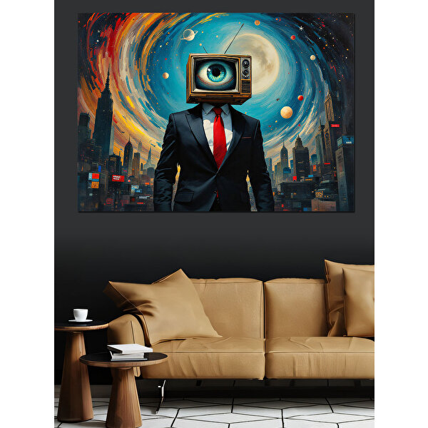 Televizyon Kafalı Adam Figürü Dekoratif Kanvas - Mdf Ahşap Tablo
