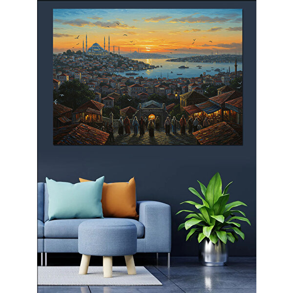 Tepeden İstanbul Manzarası Akşamı Dekoratif Kanvas - Mdf Ahşap Tablo