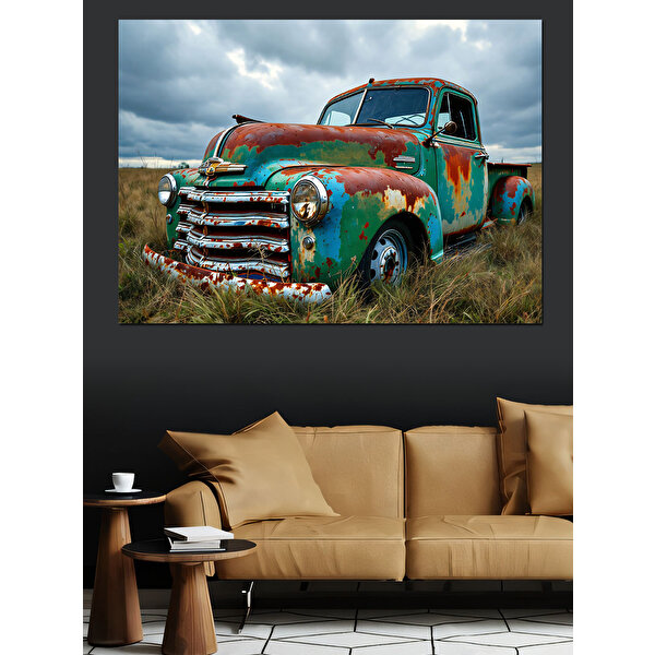 Tablomega Terkedilmiş Paslı Kamyonet Dekoratif Kanvas - Mdf Ahşap Tablo 100x140 cm