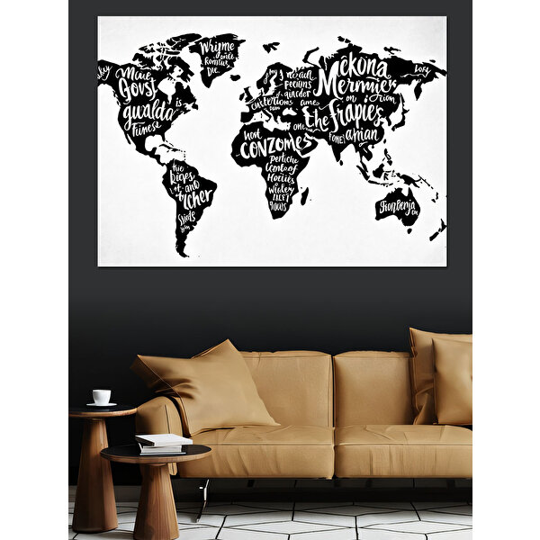 Tipografik Dünya Haritası Dekoratif Kanvas - Mdf Ahşap Tablo