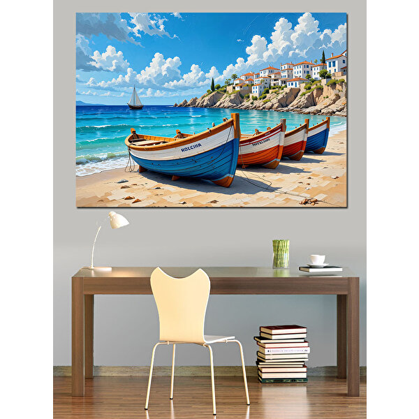 Tablomega Tropik Sahilde Renkli Sandallar Dekoratif Kanvas - Mdf Ahşap Tablo 50x70 cm