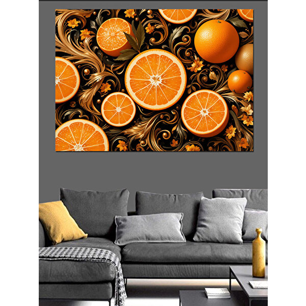 Tablomega Turuncu Dilim Ve Desen Dekoratif Kanvas - Mdf Ahşap Tablo 50x70 cm