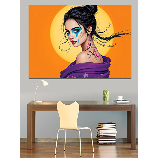 Tablomega Turuncu Fondaki Makyajlı Kadın Dekoratif Kanvas - Mdf Ahşap Tablo 70x100 cm
