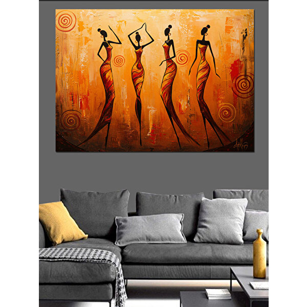Tablomega Turuncu Fonlu Dans Eden Kadınlar Dekoratif Kanvas - Mdf Ahşap Tablo 70x100 cm