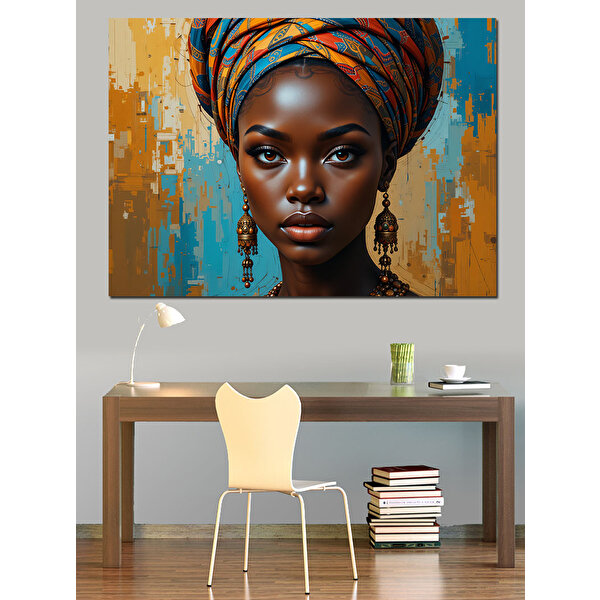 Tablomega Turuncu Mavi Arka Plan Kadın Dekoratif Kanvas - Mdf Ahşap Tablo 35x50 cm