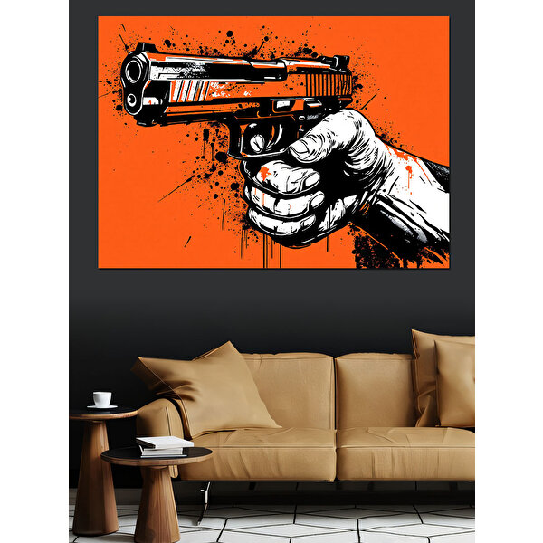 Turuncu Soyut Silah Dekoratif Kanvas - Mdf Ahşap Tablo