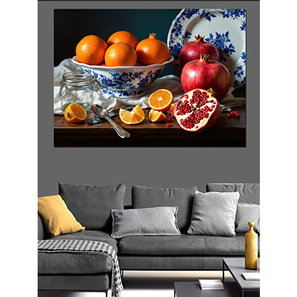 Tablomega Turuncu Ve Nar Tabağı Dekoratif Kanvas - Mdf Ahşap Tablo 100x140 cm