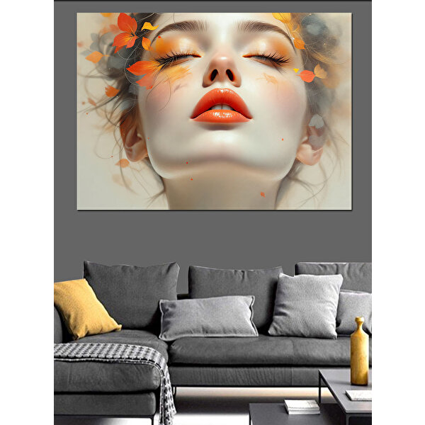 Tablomega Turuncu Yapraklı Portre Kadın Dekoratif Kanvas - Mdf Ahşap Tablo 70x100 cm