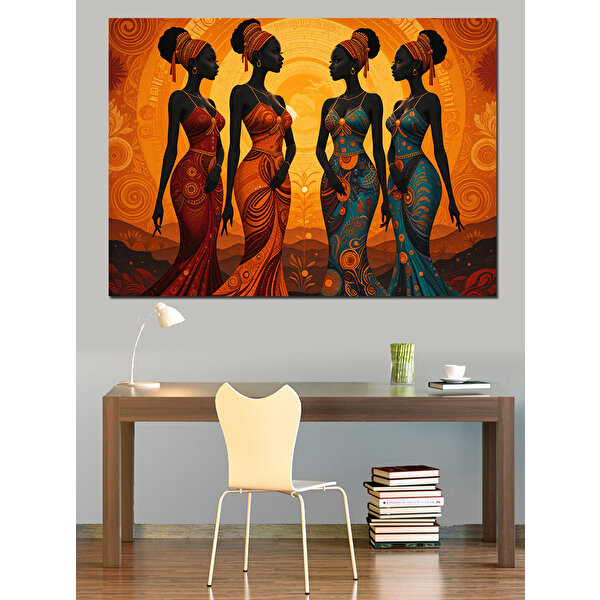 Tablomega Turuncu Zeminde Afrika Kadınları Dekoratif Kanvas - Mdf Ahşap Tablo 35x50 cm