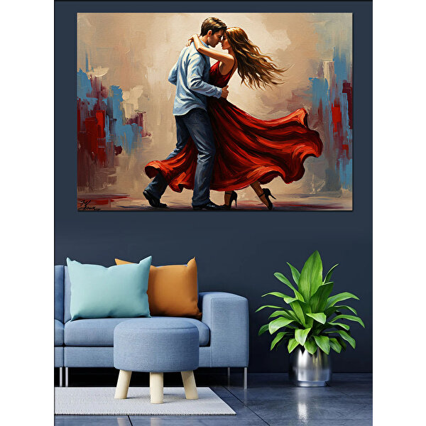 Tablomega Tutkulu Birlikte Dans Eden Çift Dekoratif Kanvas - Mdf Ahşap Tablo 35x50 cm
