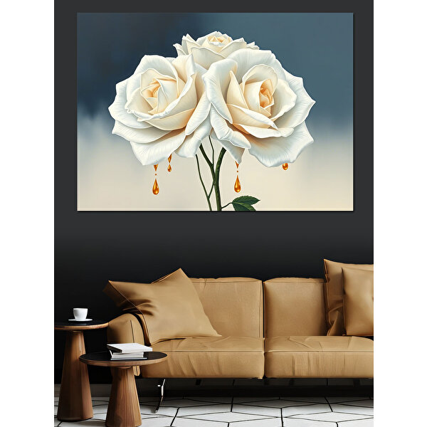 Tablomega Üç Beyaz Gül Aranjmanı Dekoratif Kanvas - Mdf Ahşap Tablo 50x70 cm